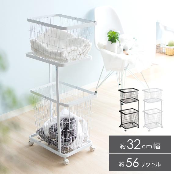 ランドリーバスケット 2段 おしゃれ スリム キャスター付き ワイヤー