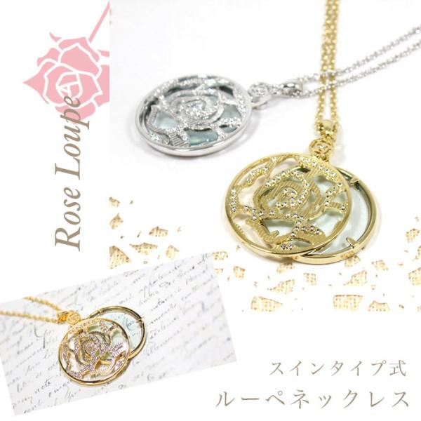 おしゃれ 拡大鏡 花モチーフ スイング ルーペネックレス ルーペ