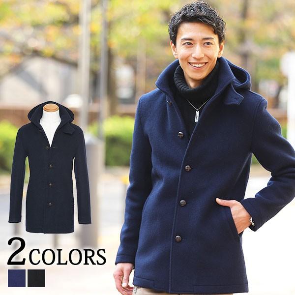 送料無料 コート メンズ アウター ショールカラー フード ウール