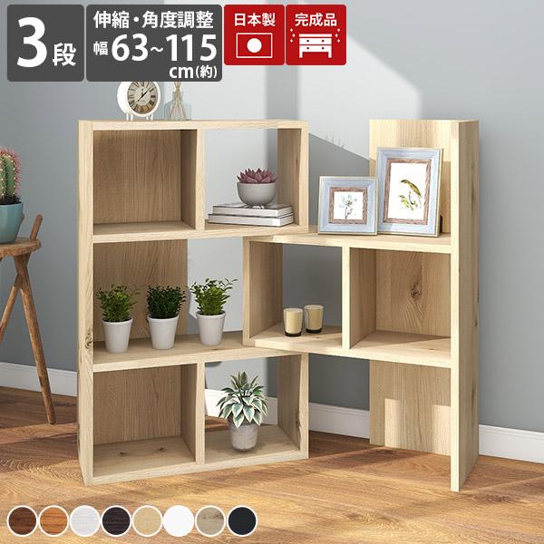 オープンシェルフ 白 本棚 伸縮 3段 木 おしゃれ ディスプレイシェルフ