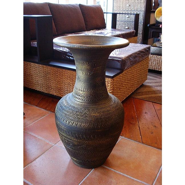 壺 焼き物 オブジェ タイ H64 陶器 アジアン 花器 花瓶 ツボ 玄関