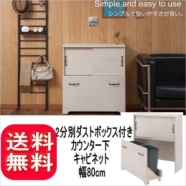 カウンター下収納 2分別ダストボックス付き キャビネット 幅80cm