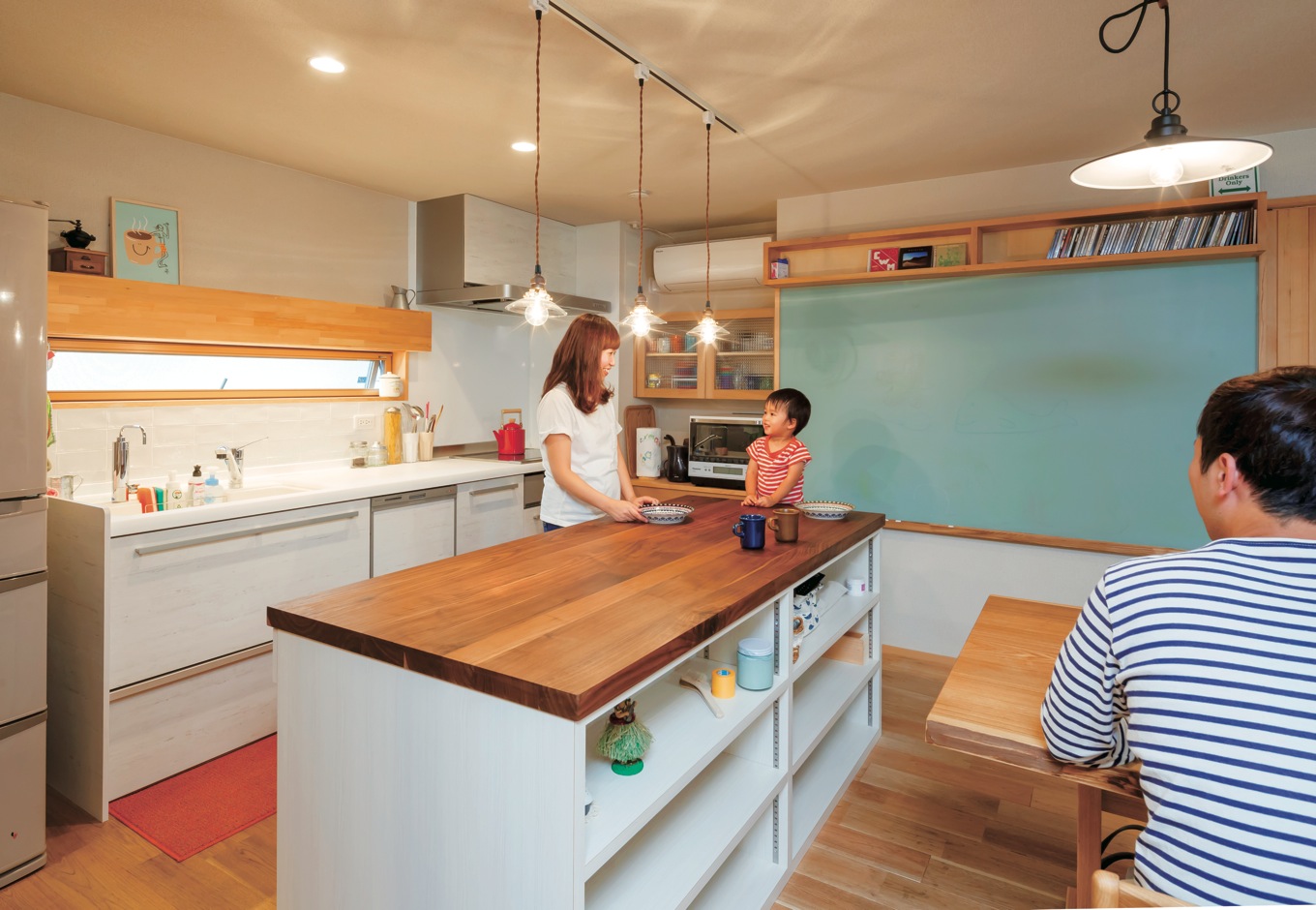 アイランドキッチンも検討したが 作業台を挟むことで配膳や片付けが