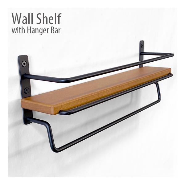 タオルハンガー付き ウォールシェルフ アイアン 木製 壁掛け棚 タオル