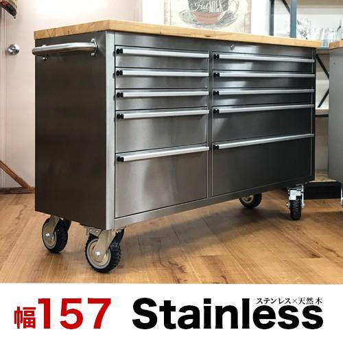 ツールキャビネット ステンレス 天然木 ステンレスワゴンw157 キッチン