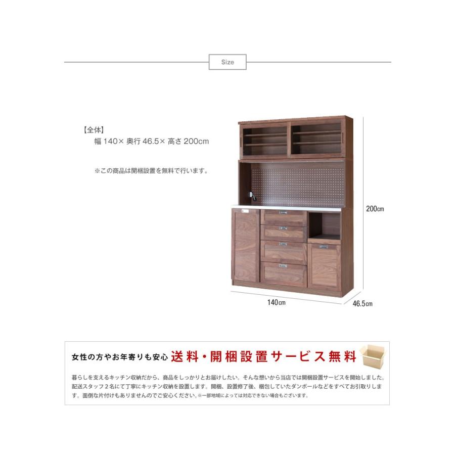 食器棚 幅140 大川家具 カップボード キッチンボード 完成品 モダン