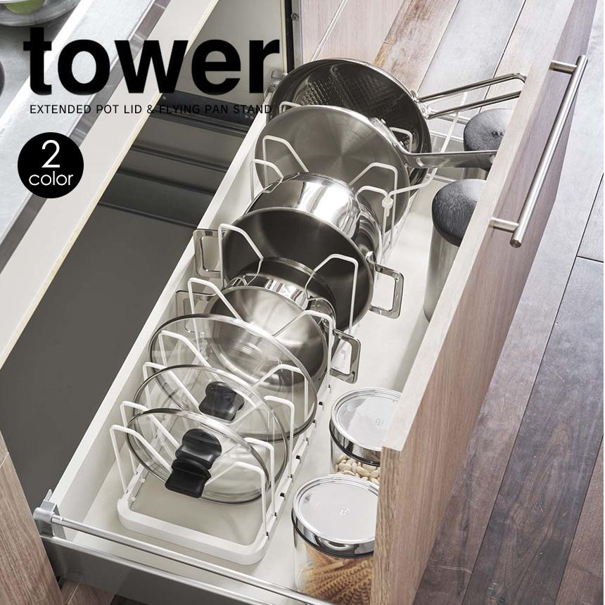 キッチンラック キッチン用品 シンク下 タワー 山崎実業 伸縮 鍋蓋 鍋