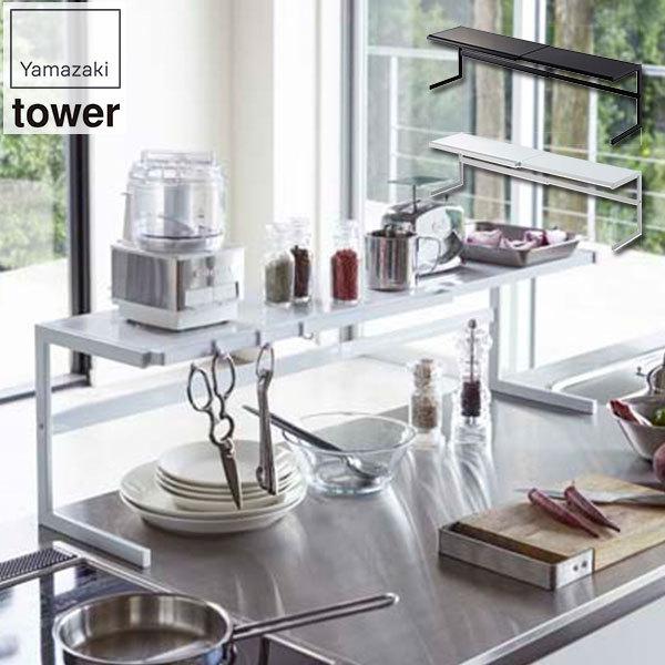 伸縮キッチンサポートラック タワー ホワイト ブラック 山崎実業 Tower