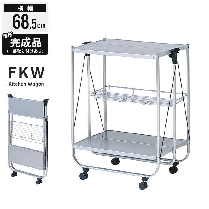 折りたたみ キッチンワゴン キャスター付 シルバー 完成品 折りたたみ