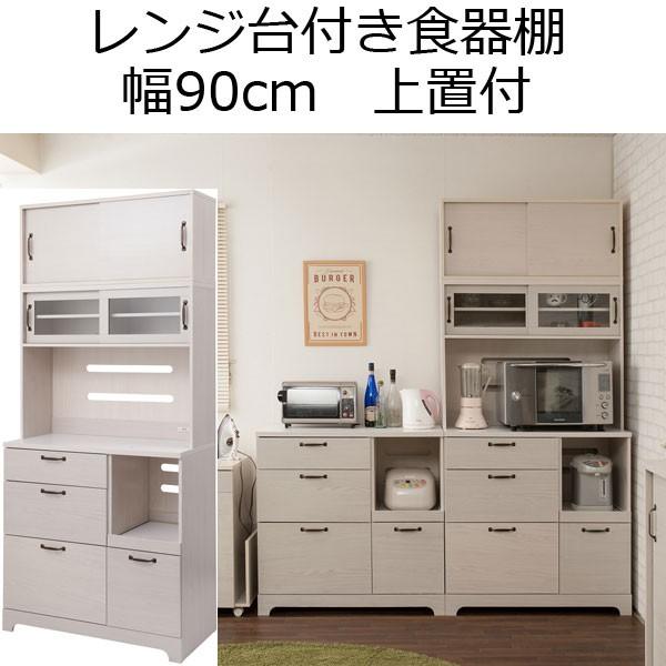 レンジ台付き食器棚 引き出し キッチン収納 上置き付き 大容量 幅90cm
