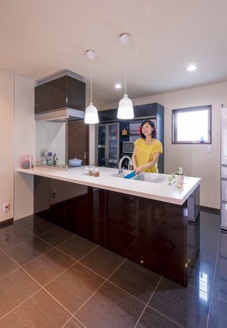 キッチン 床 黒タイル