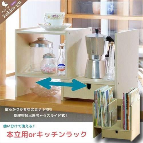日本製 スライド本立て キッチンラック 本収納 キッチン収納 本棚