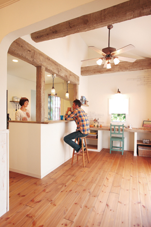 一番こだわったのは キッチンまわりと天井のアンティーク加工を施した