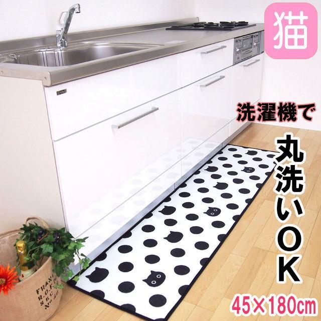 ロングマット キッチンマット 45 180cm ドットネコ アラモード ネコ柄