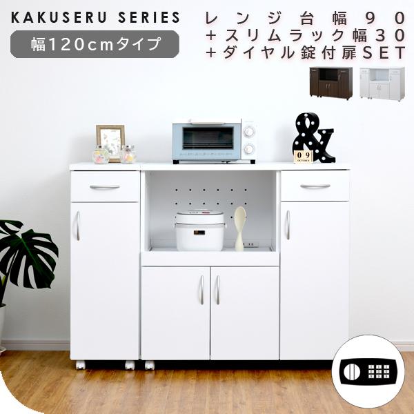 秘密の鍵付き キッチンカウンター レンジ台 幅120cmセット 間仕切り