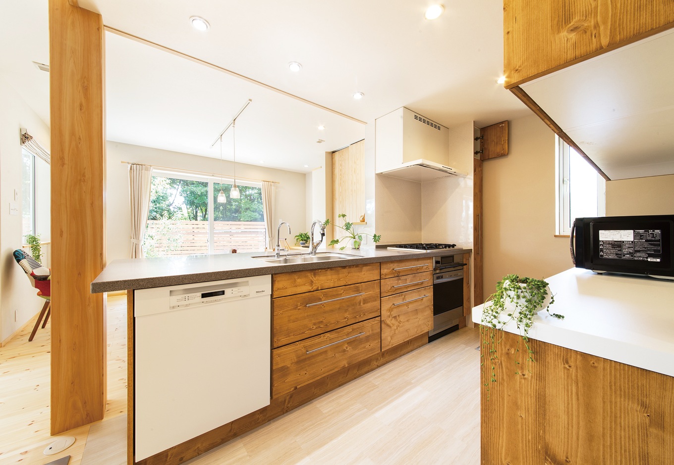 長さ3mを超えるオリジナルの木製キッチンは奥さまのこだわり パンを