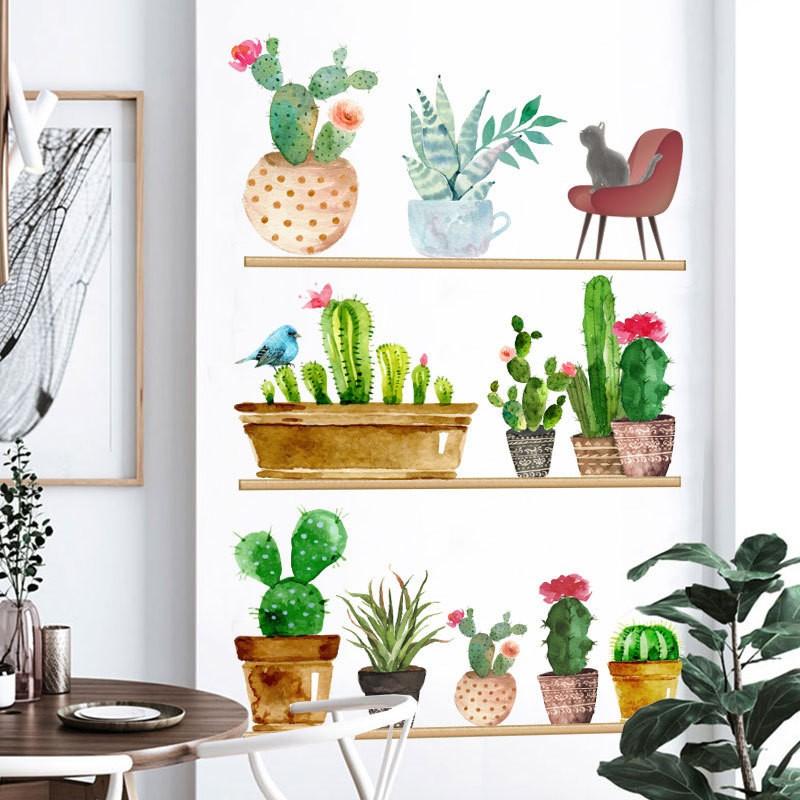 ウォールステッカー インテリア シール 壁紙 模様替え サボテン 植物
