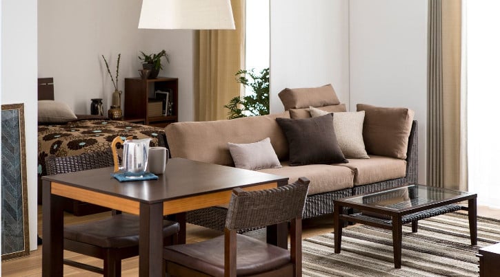 一人暮らしの部屋 ブラウンの温もり感じるモダンアジアンインテリア