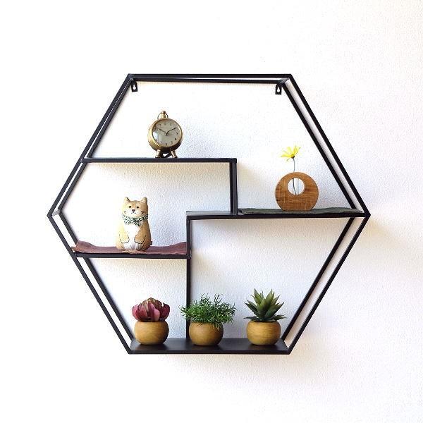 ウォールシェルフ アイアン おしゃれ 飾り棚 飾棚 ディスプレイ 壁付け 壁掛け ウォールラック 和モダン インテリア 収納 アイアンの六角飾り棚 L Mtl2790 ギギリビング 通販 Yahoo ショッピング