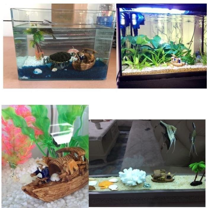 水槽用オブジェ アクアリウムオブジェ 水中レイアウト 船 釣り人 水槽