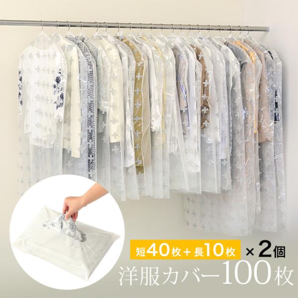 洋服カバー 100枚セット クローゼット 収納 服 カバー 不織布 柄
