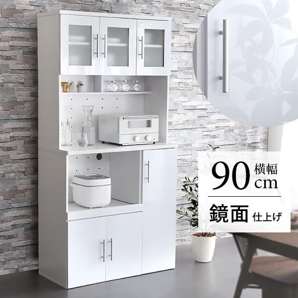 食器棚 レンジ台 幅90 鏡面仕上げ キッチン収納 カップボード キッチン